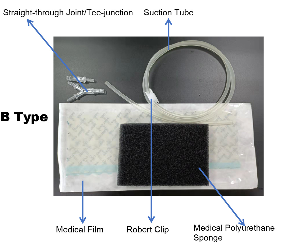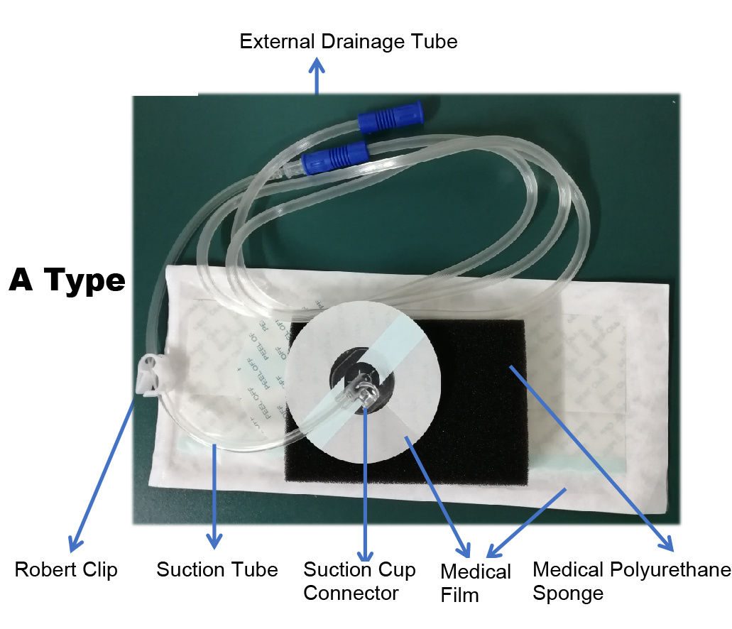 Foam Dressing: Polyurethane closed-system negative pressure wound therapy kit (foam dressing, drainage tubing, connectors, semi-permeable membrane, suction cup, etc.)