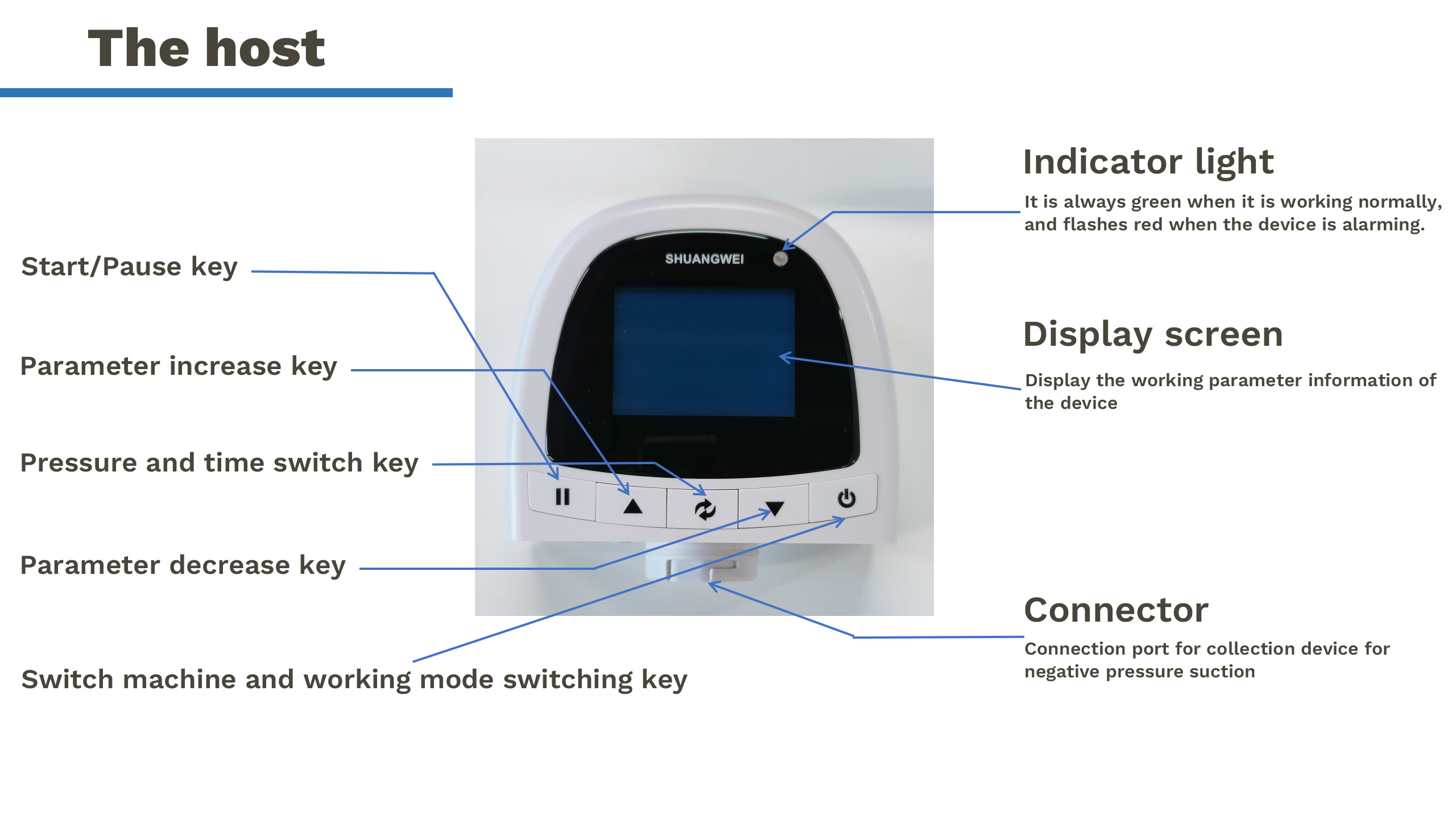 4. Normal value of negative pressure source: -50mmHg to -300mmHg